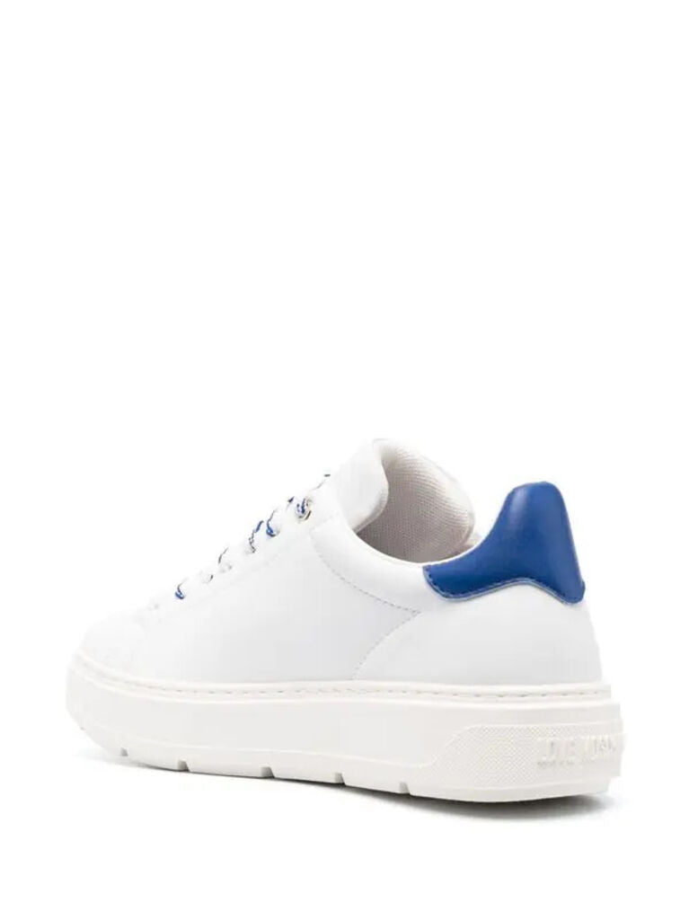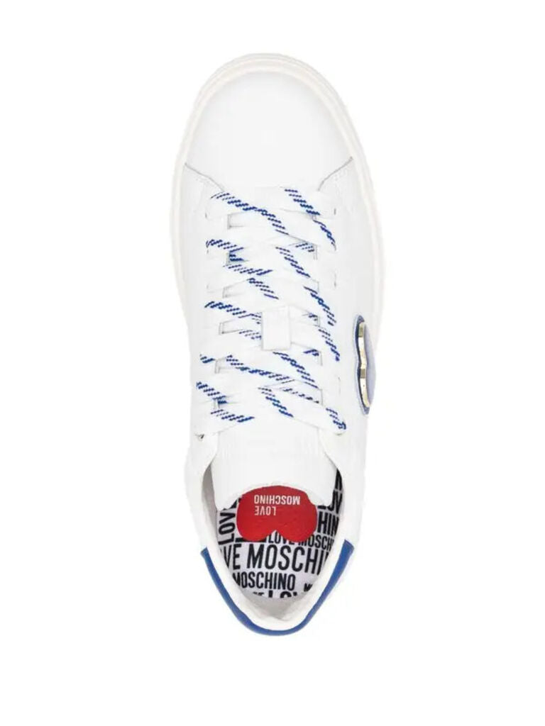 Embrace effortless style with these white sneakers featuring a striking blue heart detail. Perfect for casual outings, the structured design ensures comfort each step.