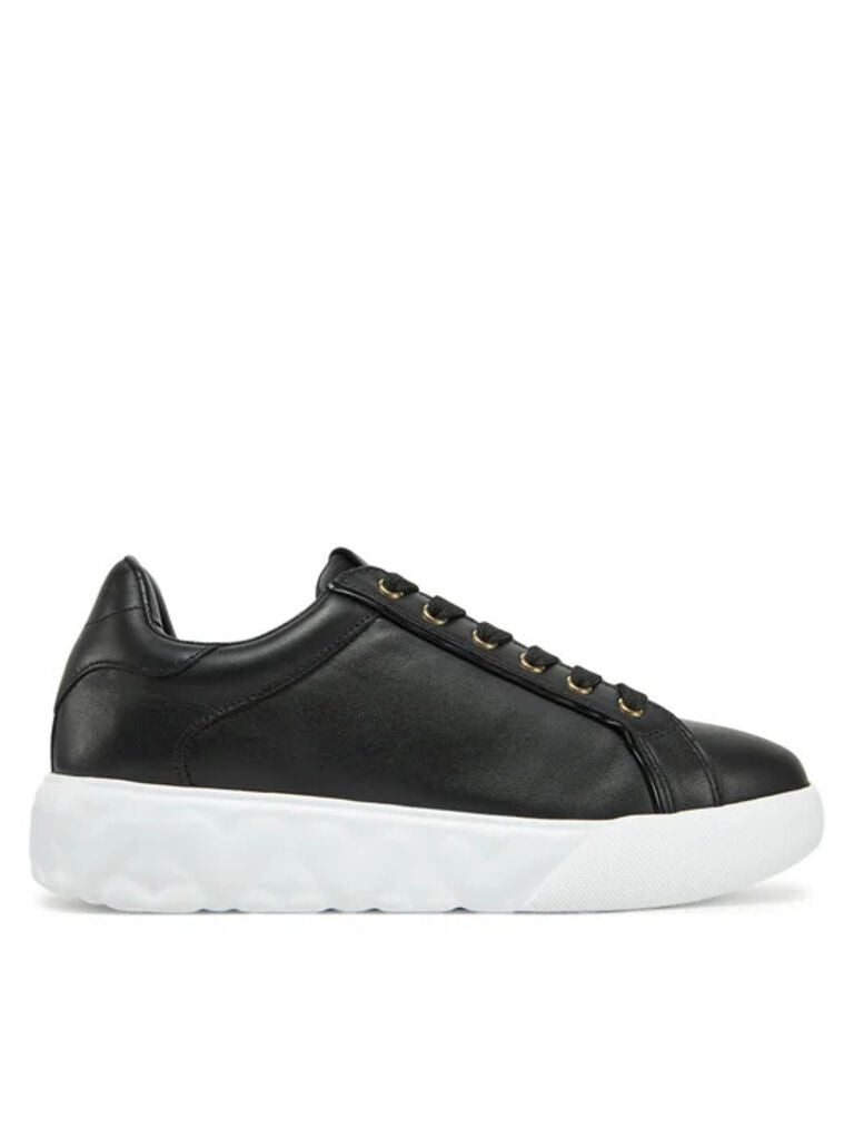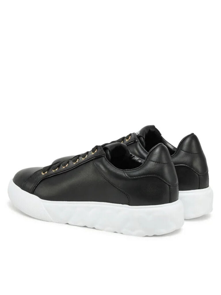 Experience the comfort of these black leather sneakers, designed for everyday versatility. The textured white sole adds a modern touch, making it perfect for casual outings.
