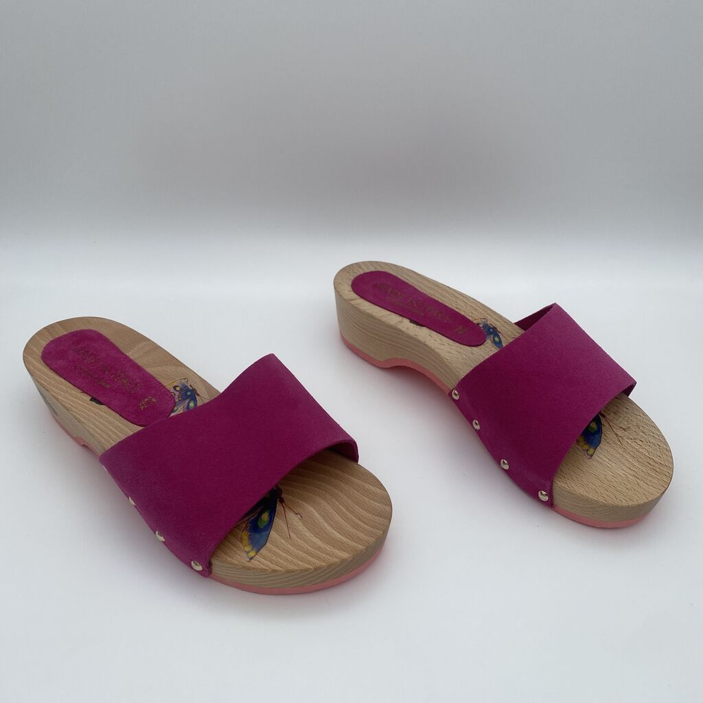 Fuchsia Wooden Slide Sandals with Rivet Detail