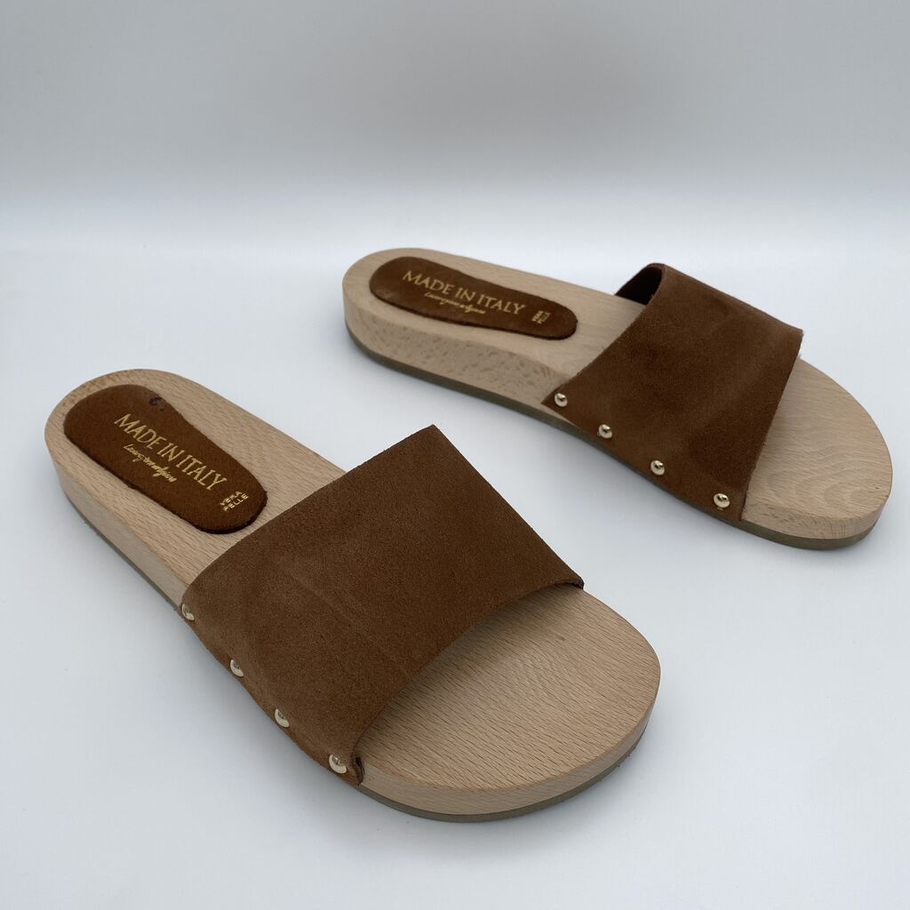 Embrace effortless elegance with these Italian-made sandals. A soft suede upper meets a natural wooden sole, offering both style and comfort. Ideal for coastal walks or relaxed city strolls.