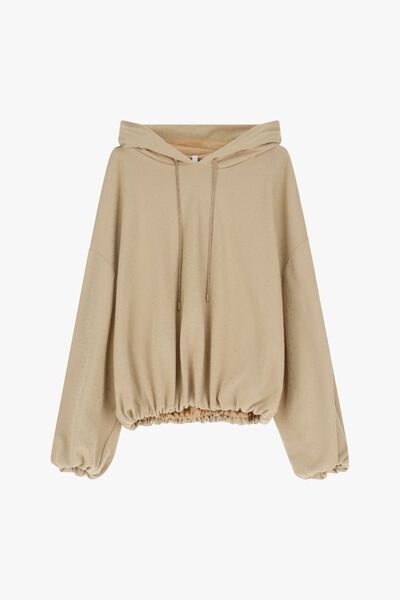 Experience cozy comfort with this relaxed hoodie, featuring an elastic hem for a refined fit. Its minimalist style fits seamlessly into any casual wardrobe, perfect for leisurely afternoons.
