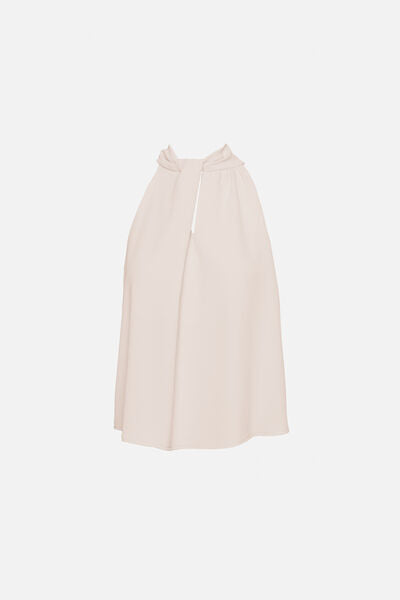 Embrace elegance with this stand-collar halter neck dress, ideal for a sophisticated outing. Its graceful flow adds a touch of timeless charm, perfect for any upscale occasion.