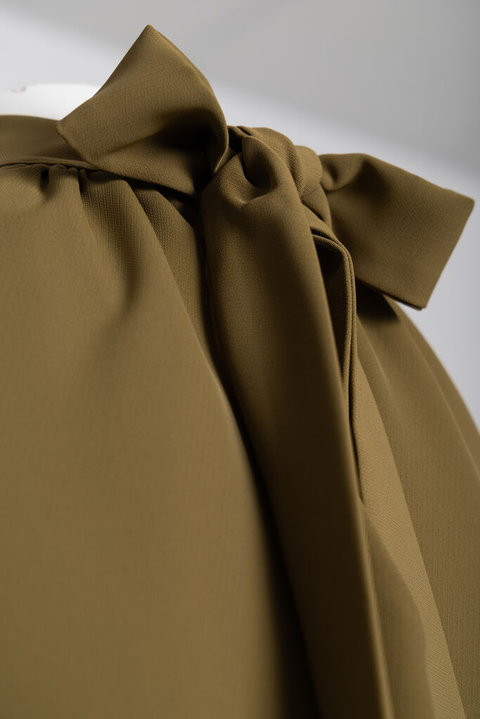 Embrace sophistication with this elegant olive halter top, featuring a stylish tie-neck detail.