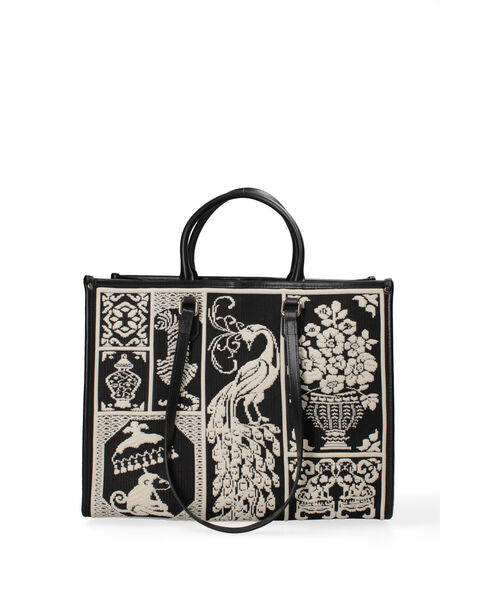 Carry sophistication with this embroidered tote, perfect for elevating your style. Its intricate patterns bring an artistic touch, ideal for both casual and formal settings.