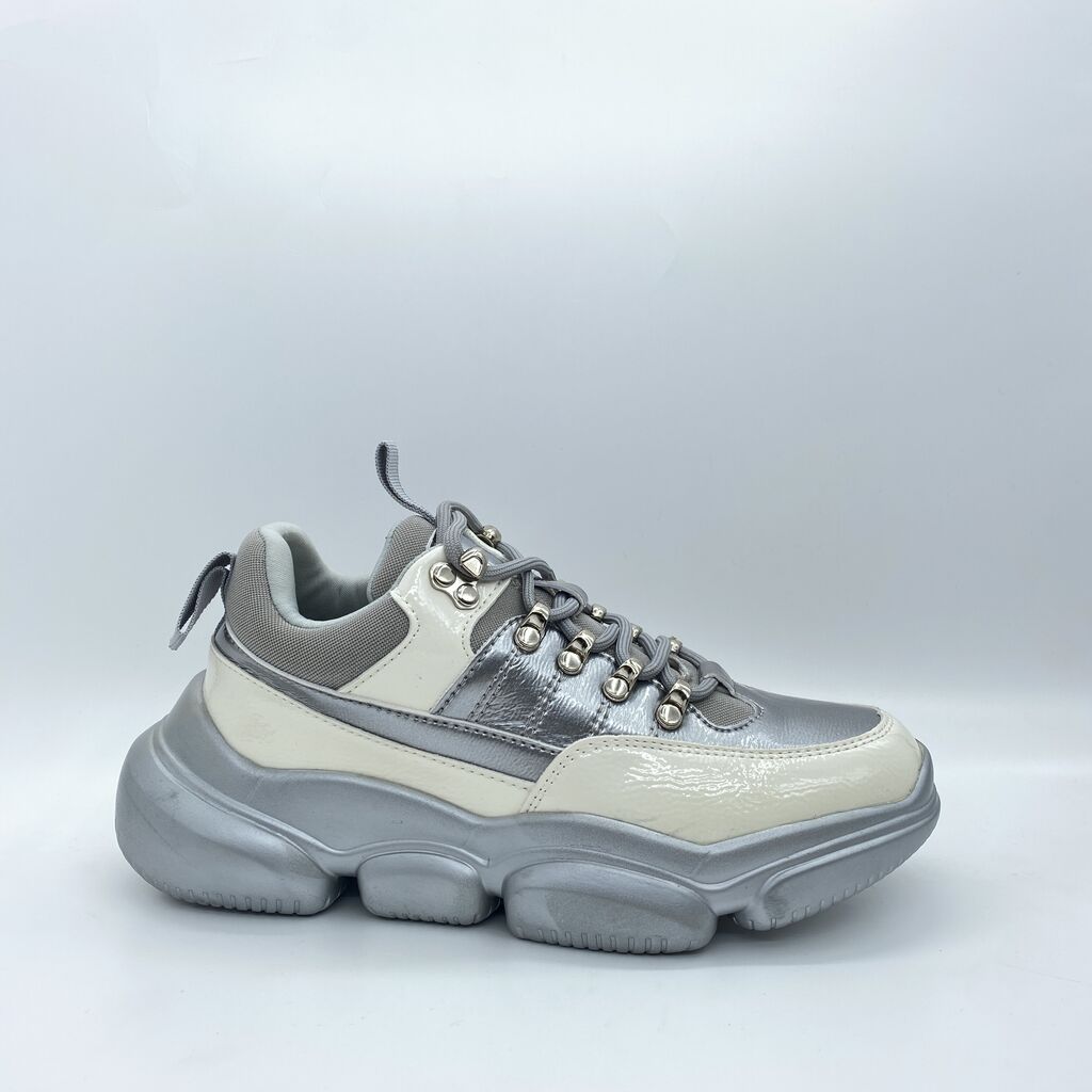 Elevate your stride with these innovative silver sneakers, defined by a striking chunky sole for ultimate comfort. Perfect for stepping out in style, they combine glossy textures with modern appeal.