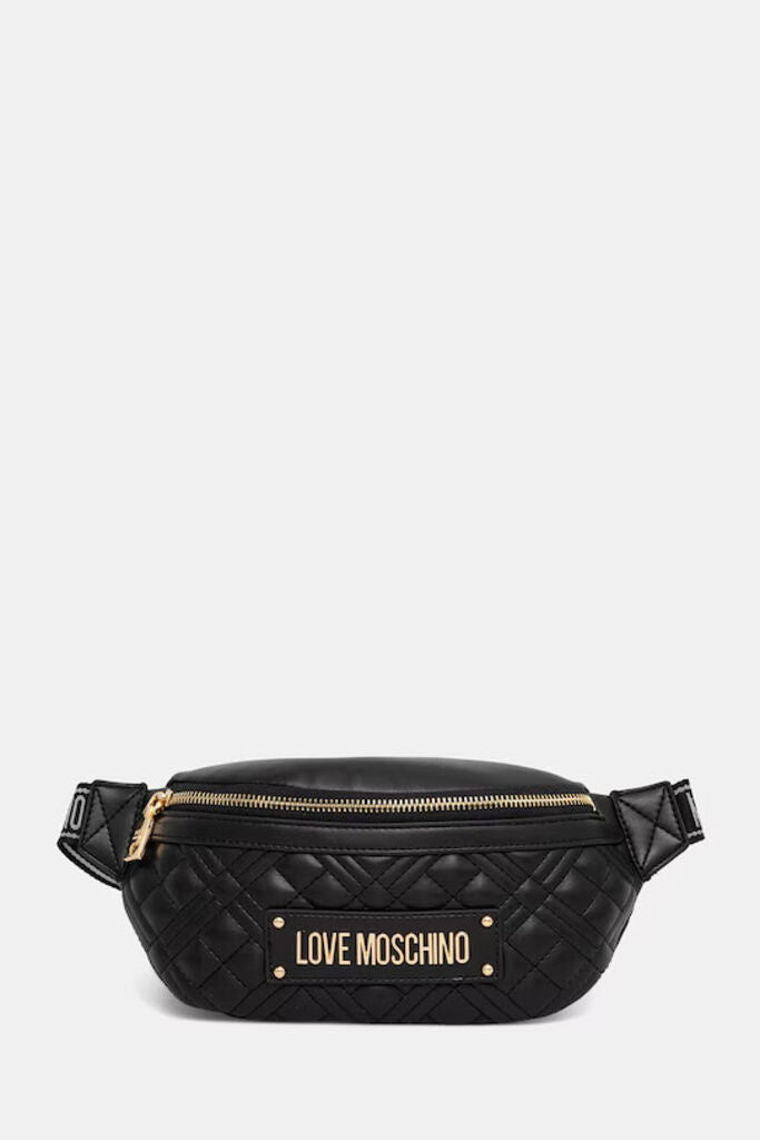 Black Quilted Belt Bag with Logo Plate