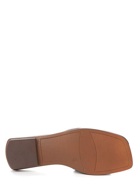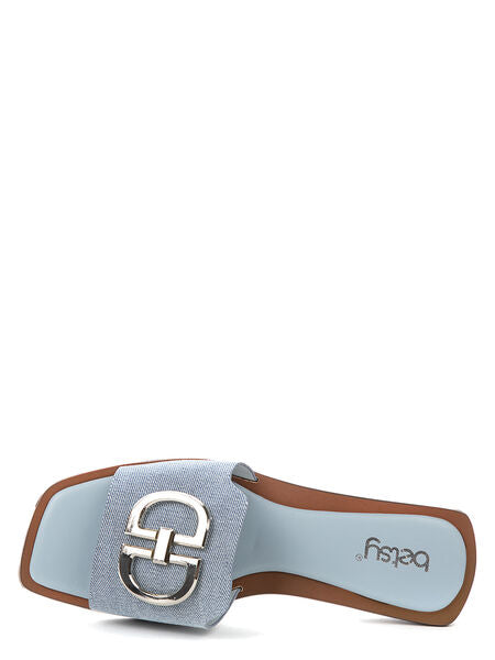 Experience effortless elegance with these blue slides. The textured finish and metallic accent add a touch of sophistication to your every step. Perfect for casual outings and laid-back evenings.