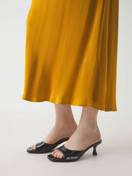 Embrace sleek elegance with these glossy kitten heel mules, perfect for an evening out. The subtle logo adds a touch of chic sophistication.
