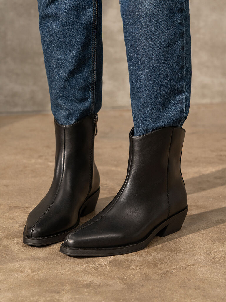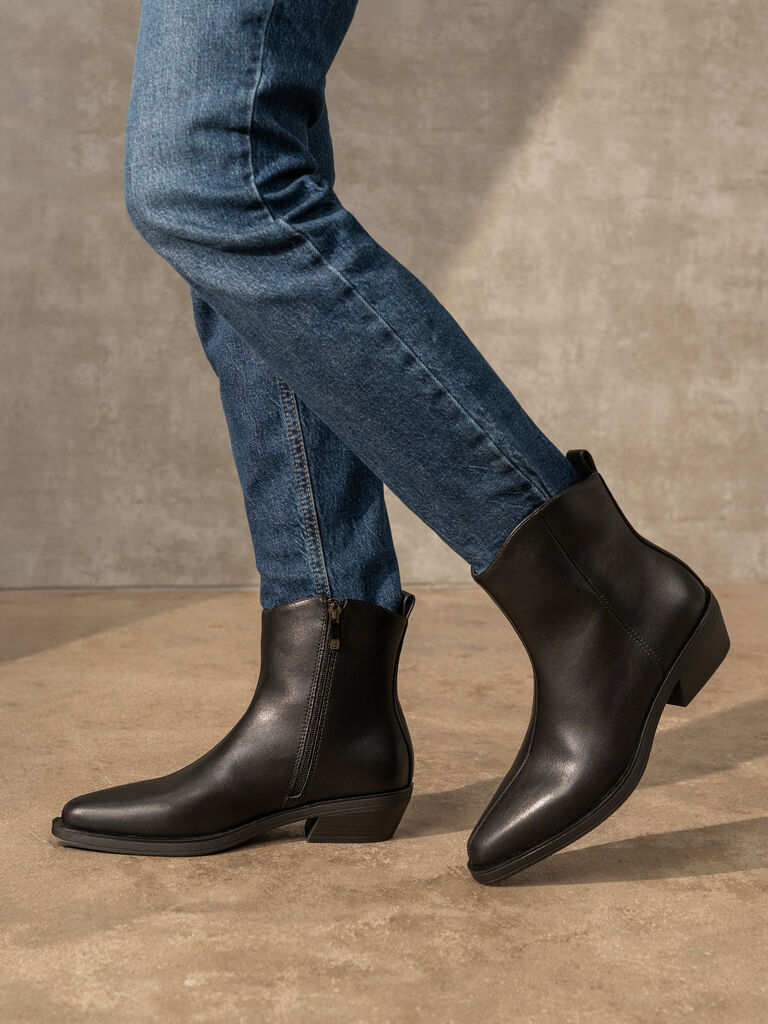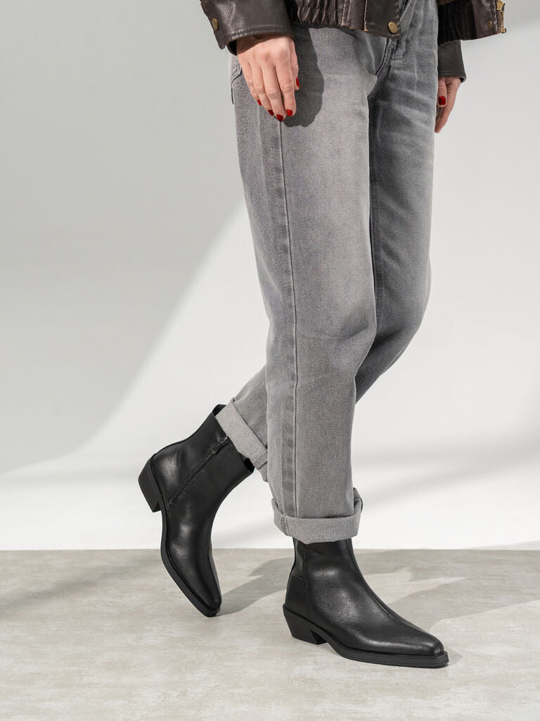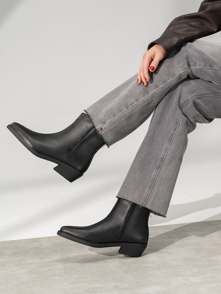 Experience unmatched elegance with these sleek black ankle boots. The low heel adds comfort while the minimalist design offers versatile styling options. Perfect for elevating everyday outfits.